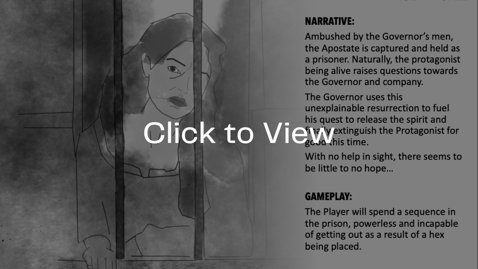 This sample is for an original concept showcasing the ability to place appropriate story beats, create convincing character motivations, and design a compelling narrative. Illustrations help paint the different scenes with accompanying story descriptions and gameplay details.