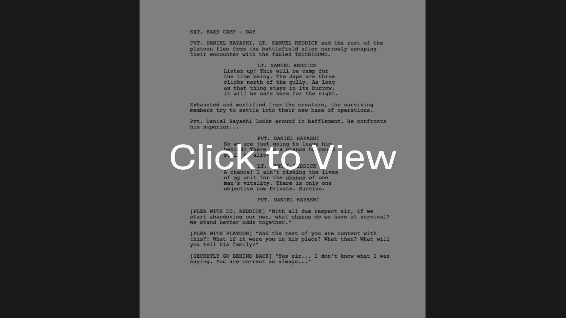 The dialogue sample focuses on gameplay and more so on player autonomy. The scene ends with branching paths for a player to choose from. This short sample illustrates the ability to write for a non-linear narrative game, providing concise yet rewarding paths for a player to select from without feeling frustration or confusion.